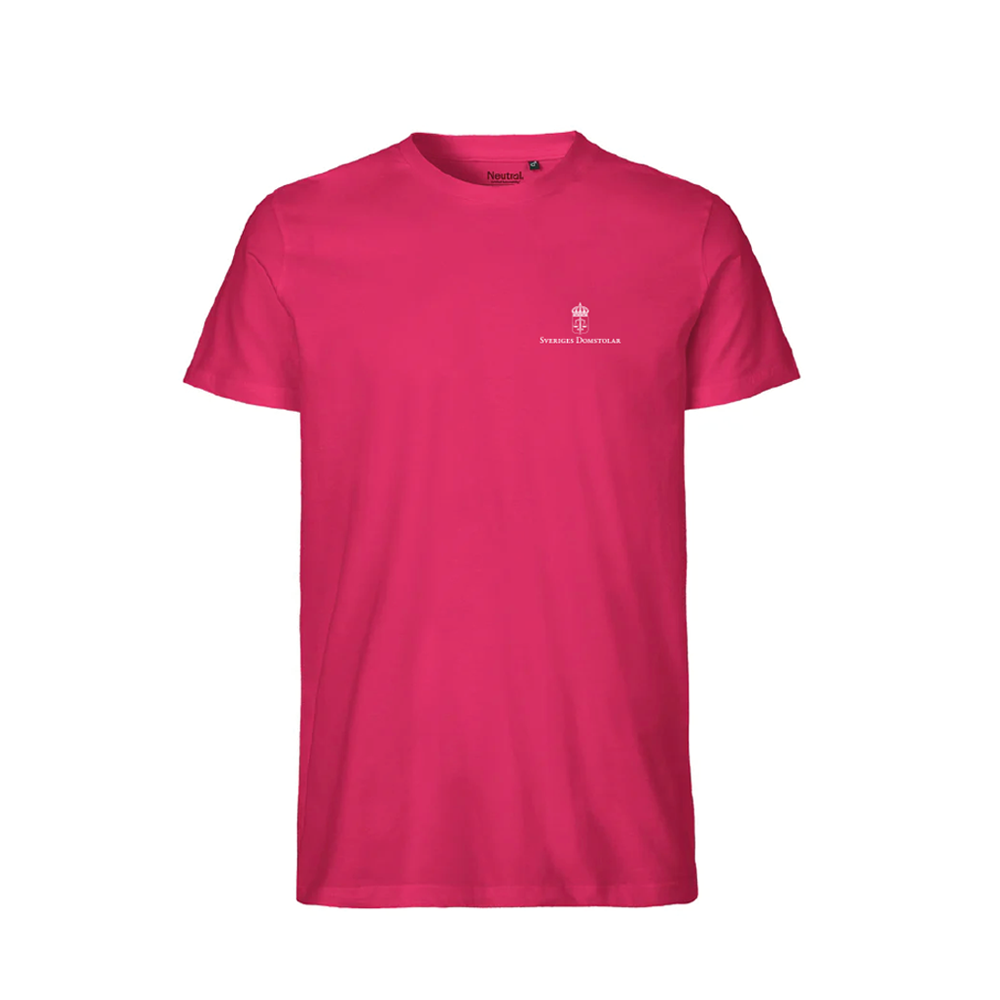 T-shirt Herr, rosa. En modern och skön t-shirt i slim passform. 100% Ekologisk Fairtrade bomull - 155gsm. Ringspunnen kammad bomull. Pris inkluderar 1-färgstryck i vitt med Sveriges domstolars logotyp och det gemensamma vapnet för Sveriges Domstolar.